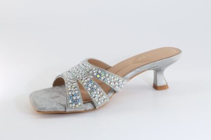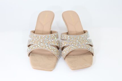 صندل كعب عريض مزين ب الماس ناعم